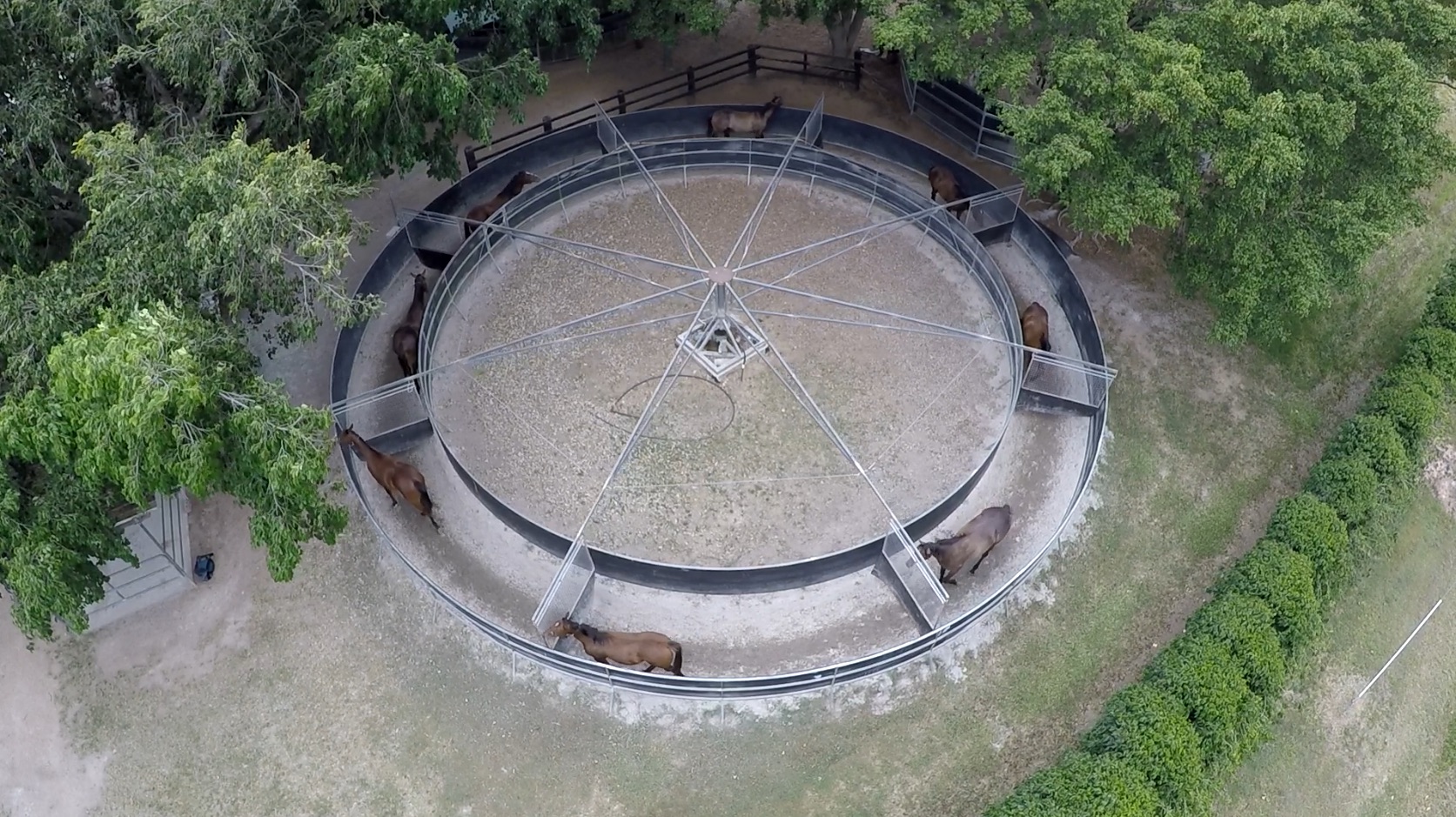 The farm features 1200 Sand Track, Swimming Pool, Aqua pacer, Treadmill, Walker, 25 Stables